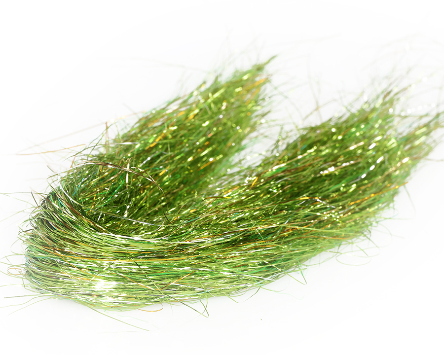 A blend of fine metallic, pearl, UVR and Mirage fibers is an extremely soft and mobile shimmering hairs with a highly pulsating action, designed for tying pike streamers and saltwater flies. Each color consists of many shades and usually about 1/8 of the fiber reflects UV light. A generous 3 gram pack!