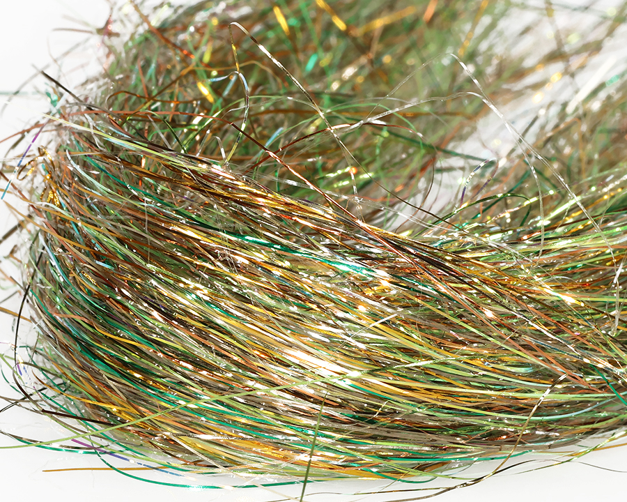A blend of fine metallic, pearl, UVR and Mirage fibers is an extremely soft and mobile shimmering hairs with a highly pulsating action, designed for tying pike streamers and saltwater flies. Each color consists of many shades and usually about 1/8 of the fiber reflects UV light. A generous 3 gram pack!