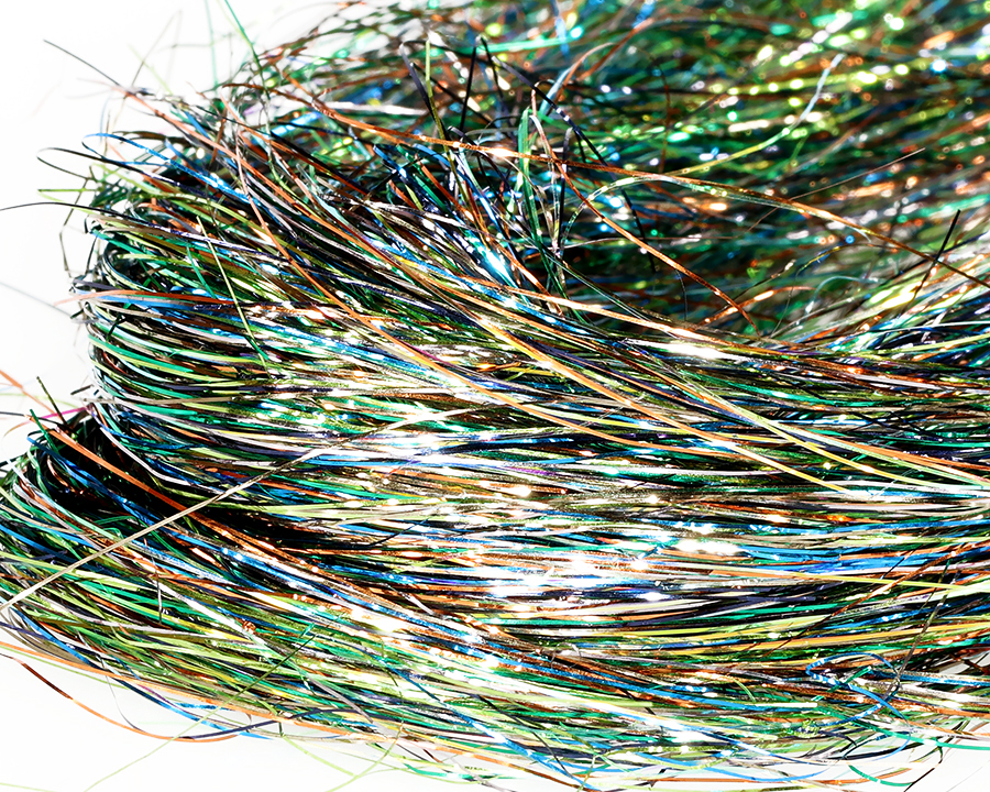 A blend of fine metallic, pearl, UVR and Mirage fibers is an extremely soft and mobile shimmering hairs with a highly pulsating action, designed for tying pike streamers and saltwater flies. Each color consists of many shades and usually about 1/8 of the fiber reflects UV light. A generous 3 gram pack!