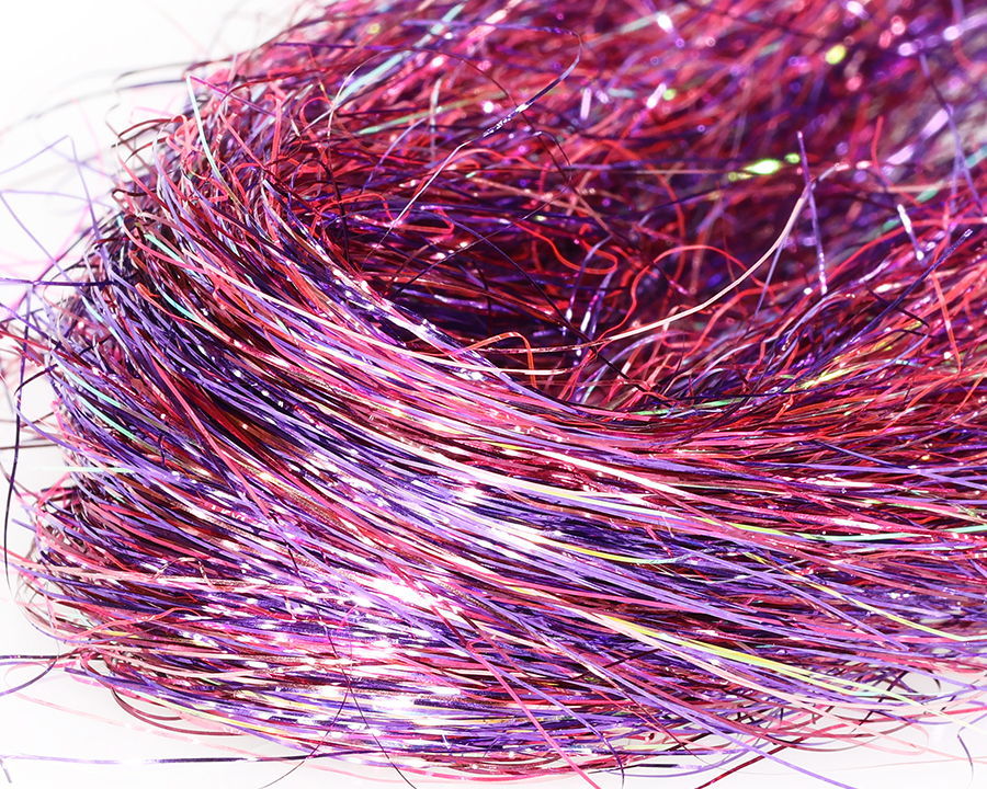 A blend of fine metallic, pearl, UVR and Mirage fibers is an extremely soft and mobile shimmering hairs with a highly pulsating action, designed for tying pike streamers and saltwater flies. Each color consists of many shades and usually about 1/8 of the fiber reflects UV light. A generous 3 gram pack!