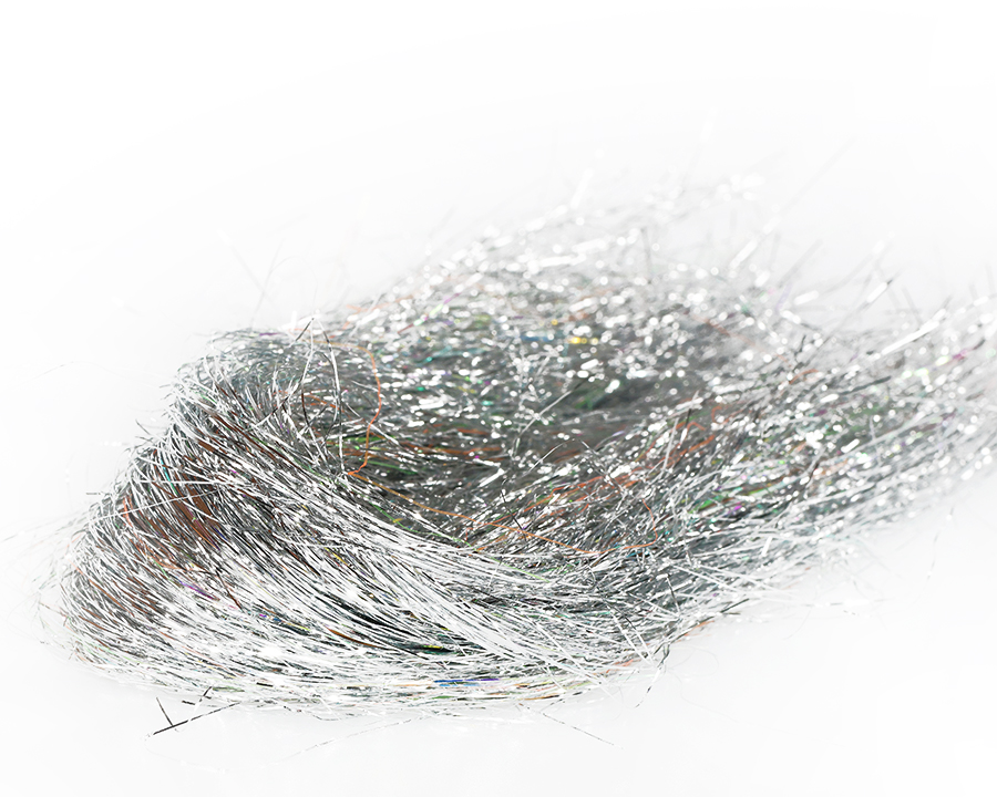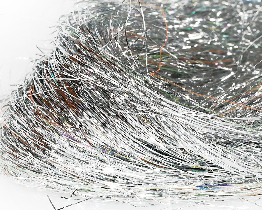 A blend of fine metallic, pearl, UVR and Mirage fibers is an extremely soft and mobile shimmering hairs with a highly pulsating action, designed for tying pike streamers and saltwater flies. Each color consists of many shades and usually about 1/8 of the fiber reflects UV light. A generous 3 gram pack!