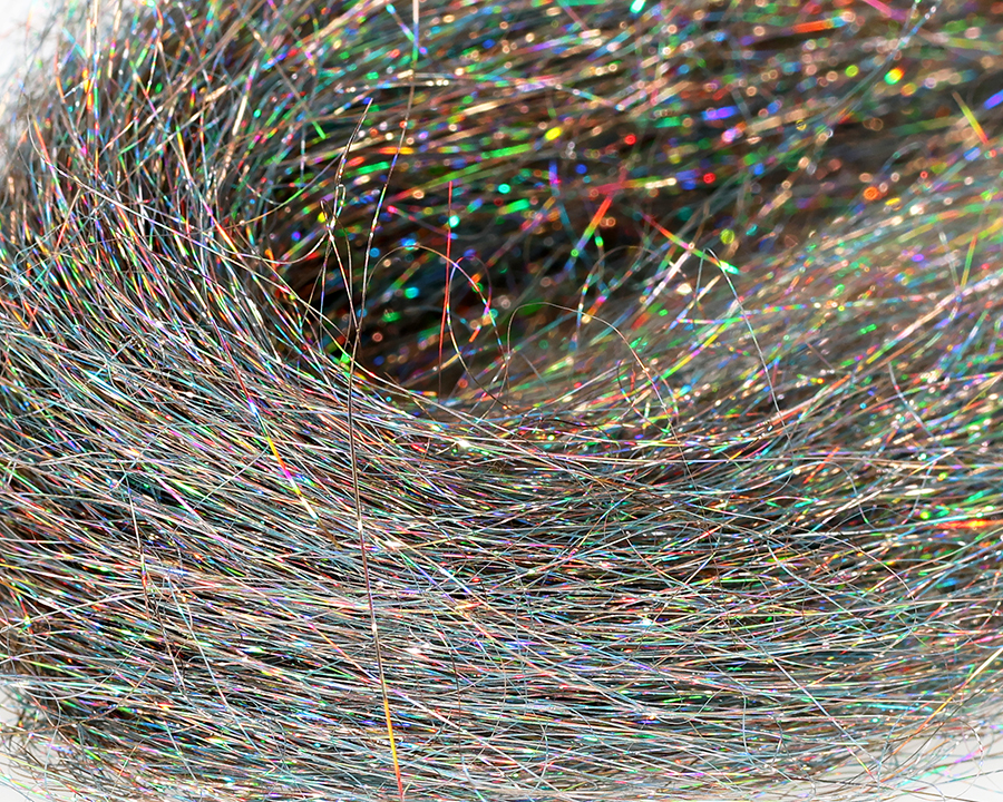 Holographic "Angel Hair" dyed in shades that fly fishers have long been missing. Colors marked "UVR" strongly reflect UV radiation, i.e., they "light up" the fly at great depths if sunlight penetrates there.