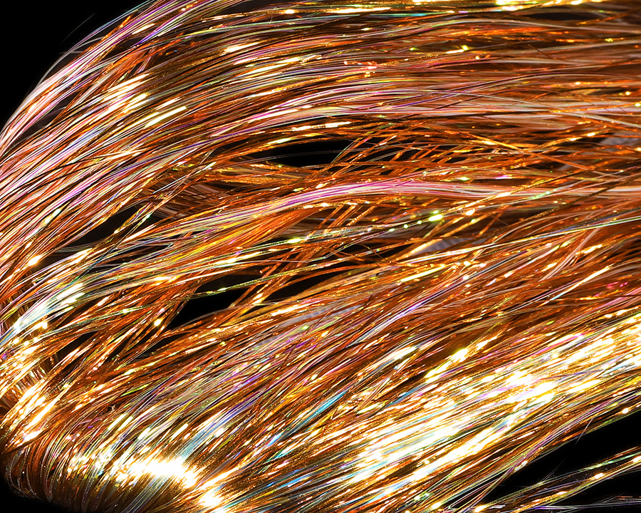 A blend of fine synthetic flash fibers for tails and wings on freshwater and saltwater streamer flies.