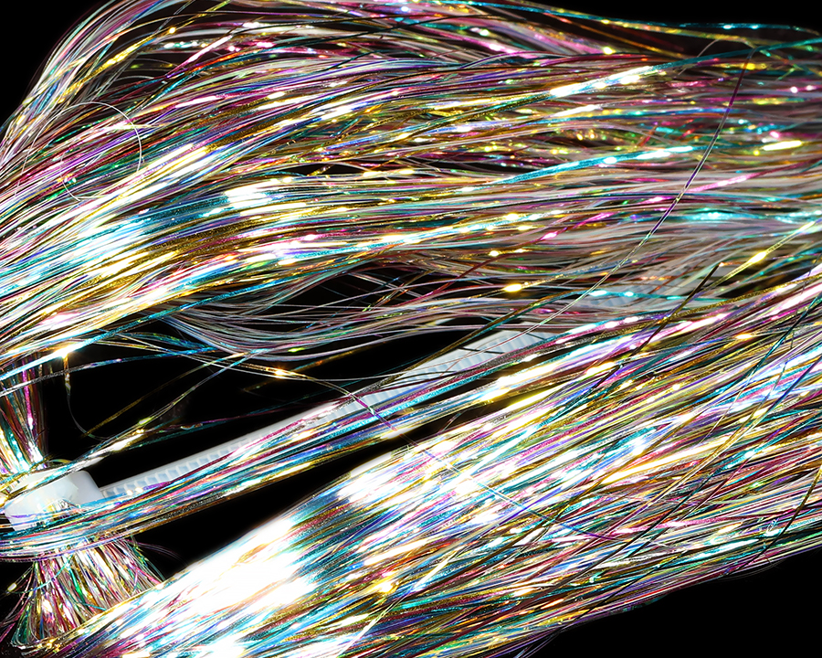 A blend of fine synthetic flash fibers for tails and wings on freshwater and saltwater streamer flies.
