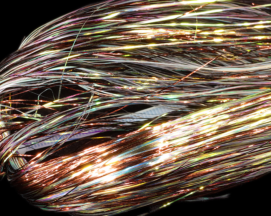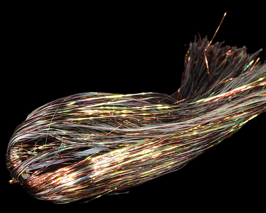 A blend of fine synthetic flash fibers for tails and wings on freshwater and saltwater streamer flies.