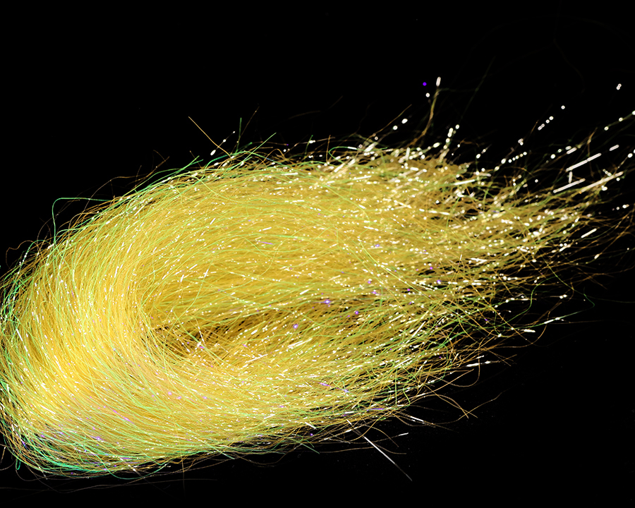 Fine but stiffer translucent synthetic hair with a length of 15 to 20 cm, packed in strands. They do not absorb water, so large flies are not weighed down. Thanks to their stiffer structure, they hold the shape of the fly but are flexible and have a pulsating movement. Excellent material for wings, tails, and even the entire body of the fly.
